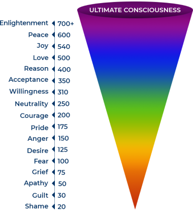 The pioneer of consciousness studies was Dr. David R. Hawkins. Through his extensive research, he developed a Map of Consciousness. It categorizes values, attitudes, and emotions that correspond to different consciousness levels. These levels range from 1 to 1,000.